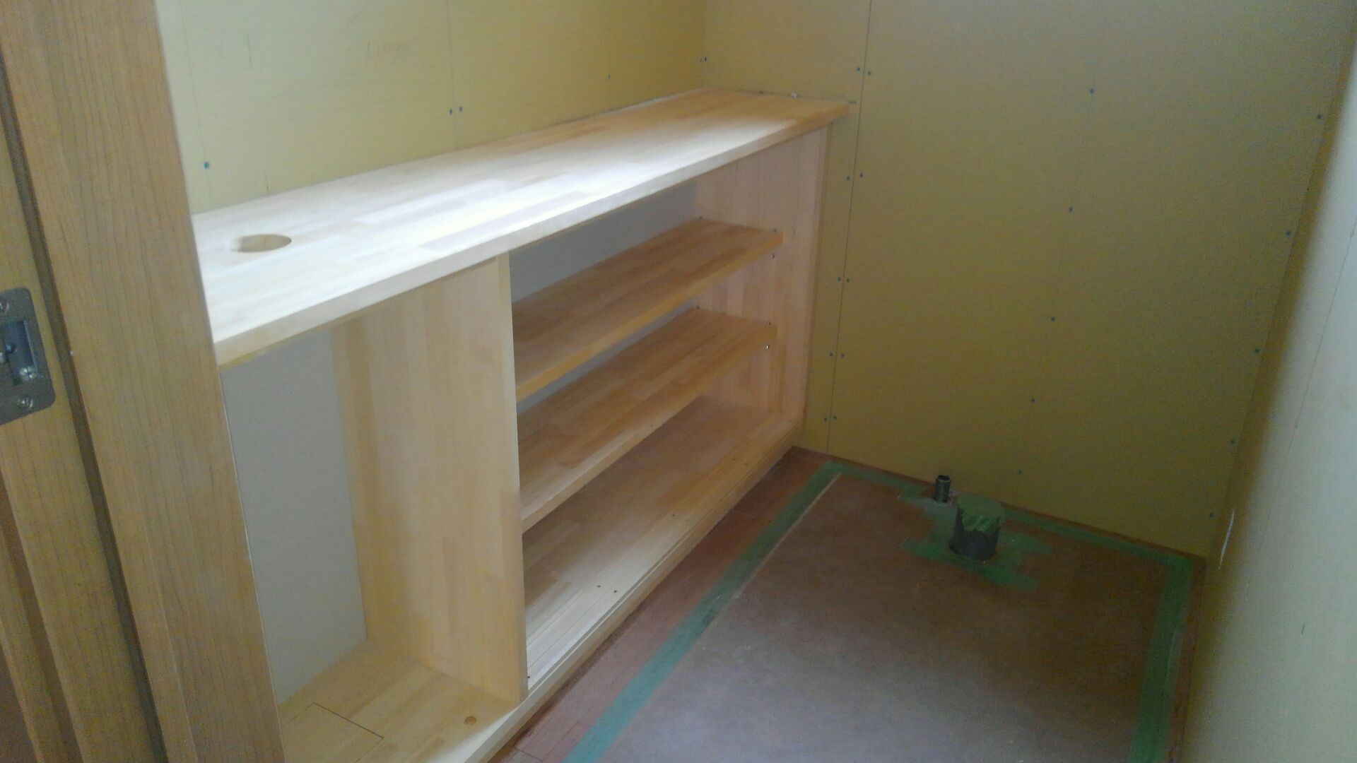 そこで大工さんが造作この上に少し大きめの手洗ボールを取付です。