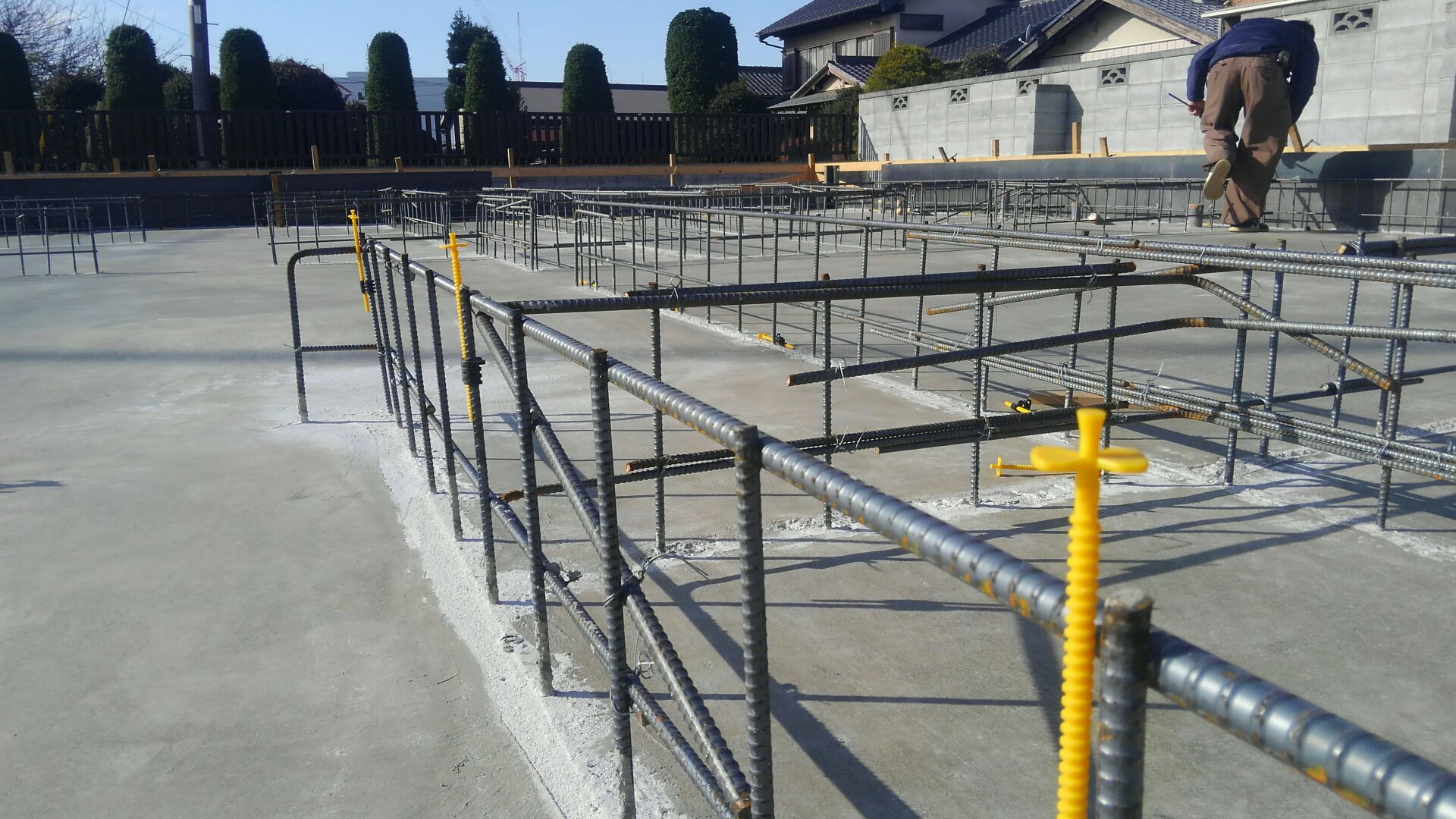 レベルポインターを鉄筋に仕込ませます。黄色いのがそうです。