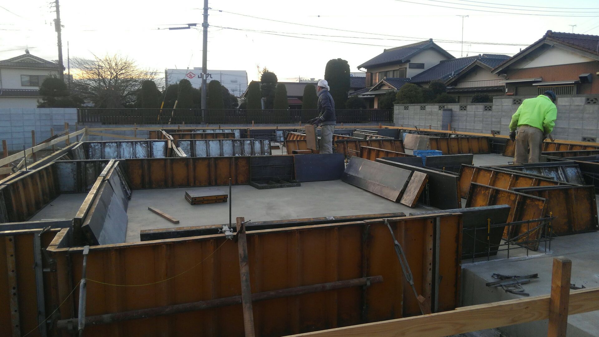 耐圧盤打ち込み完了!続いては基礎立ち上がり枠を組む前に