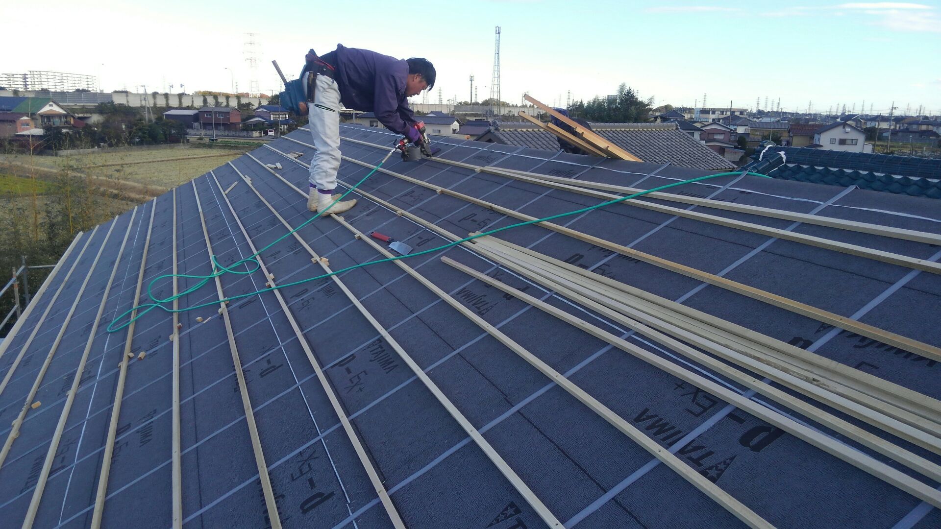 (瓦桟…野地板にレールの様に横向きに取り付ける木材)