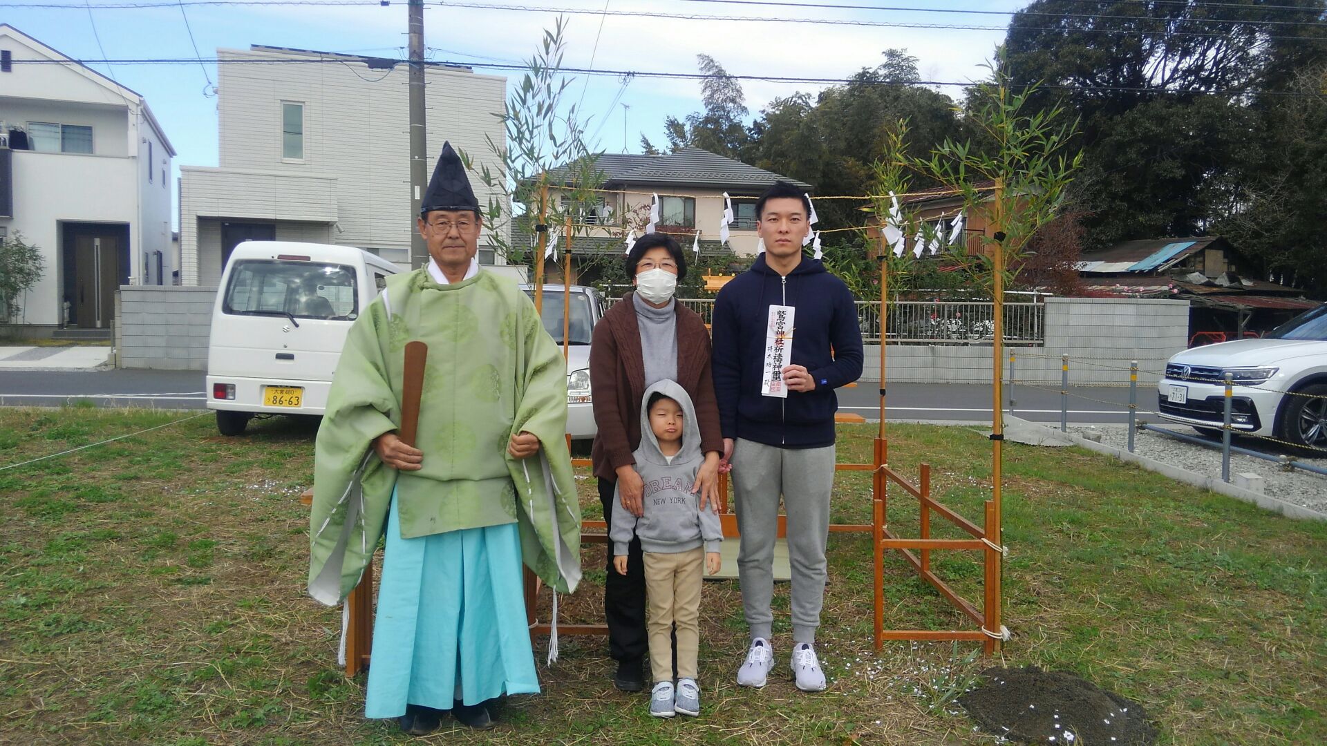 奥様は残念ながら風邪の為欠席でしたが、天候にも恵まれとどこおりなく地鎮祭終了です。