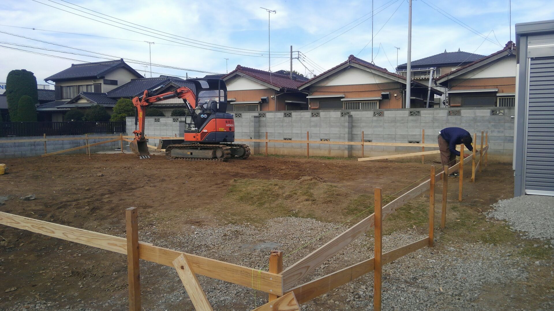 まずは、いつも通り丁張から基礎工事の始まりです。