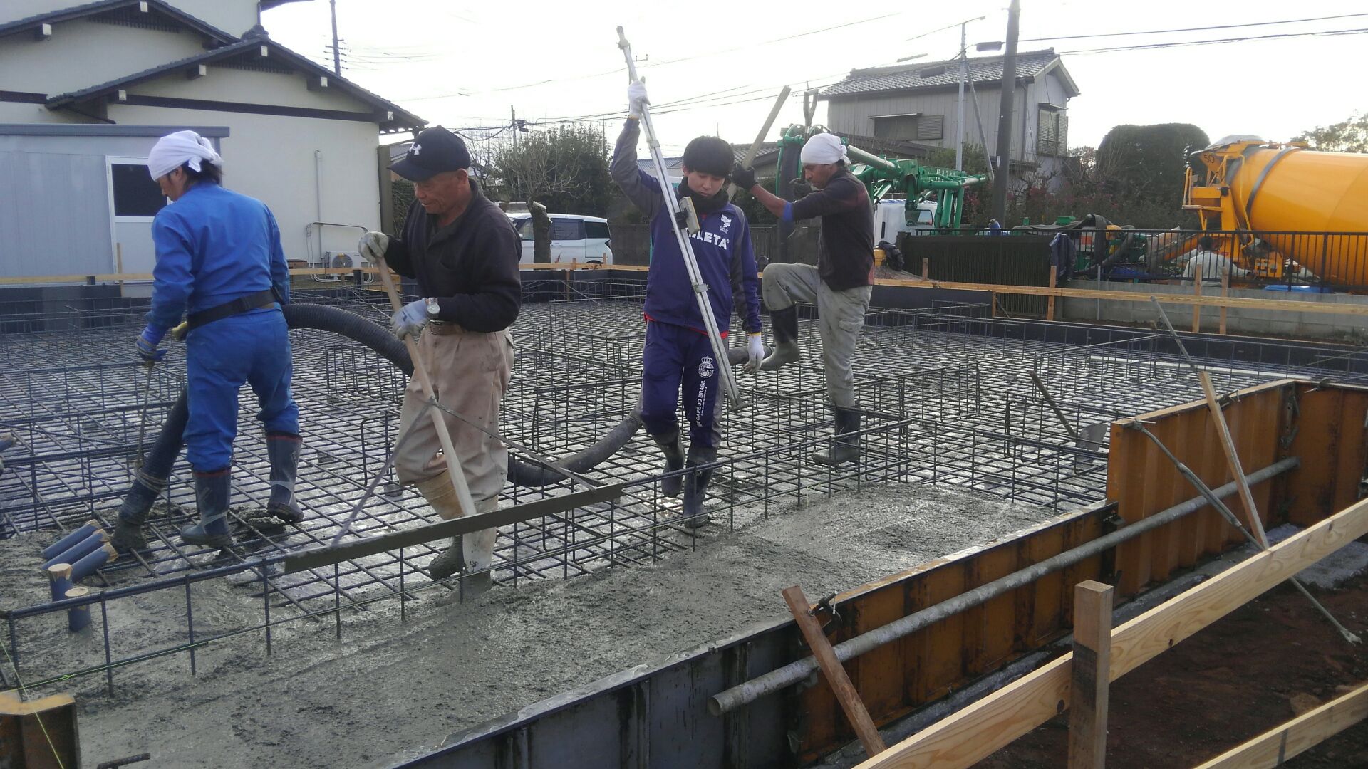配筋検査の翌日、早速耐圧盤のコンクリート打ち込みです。