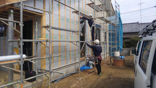 タイル下地のサイディングをプレカットでお願いしました。