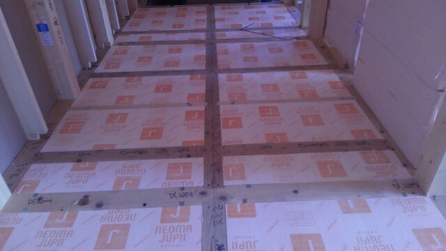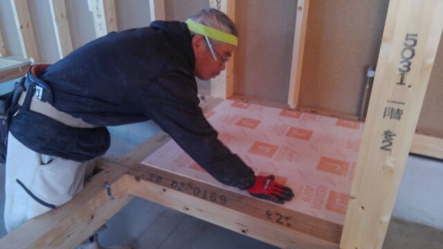 その頃ご実家の前の現場では床下の断熱材入れを始めています。
