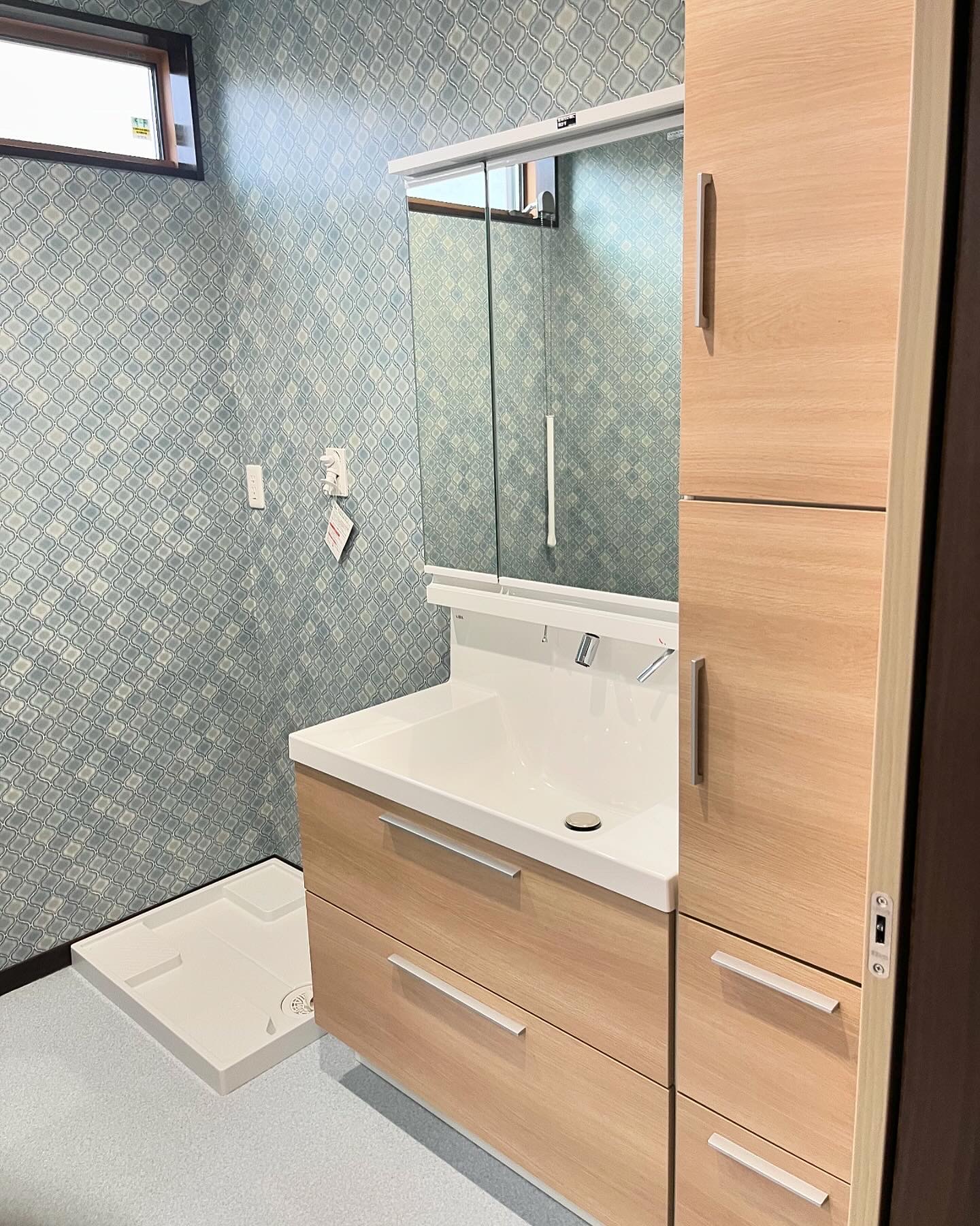 シンプルな洗面所にもおしゃれなクロスで存在感アップ✨