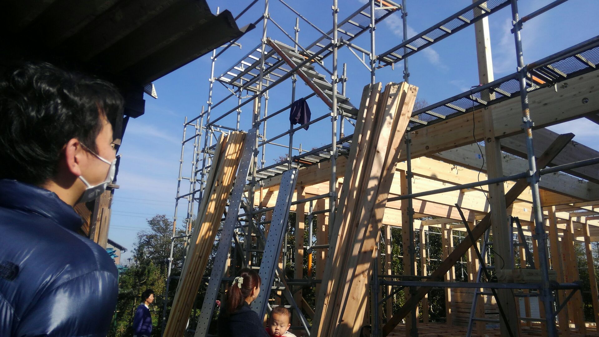 お客様が見守る中、建て方が始まりました。