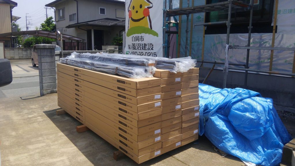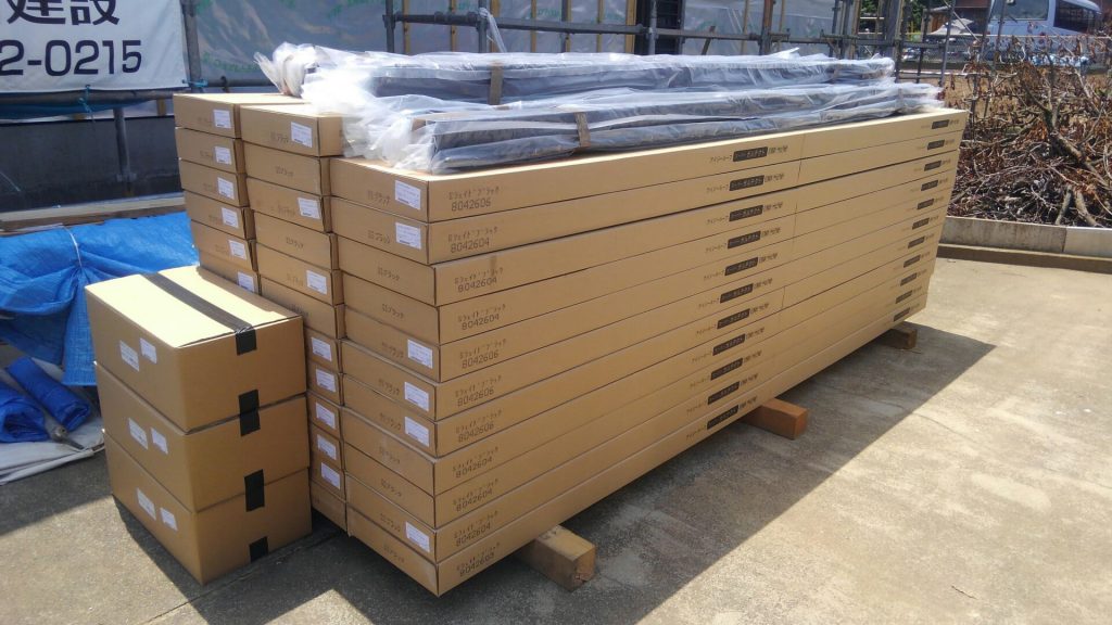 現場に屋根材が搬入されました。