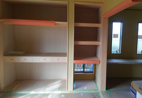 大壁和室の押し入れには引き出し付きの中段を(※施工途中写真)